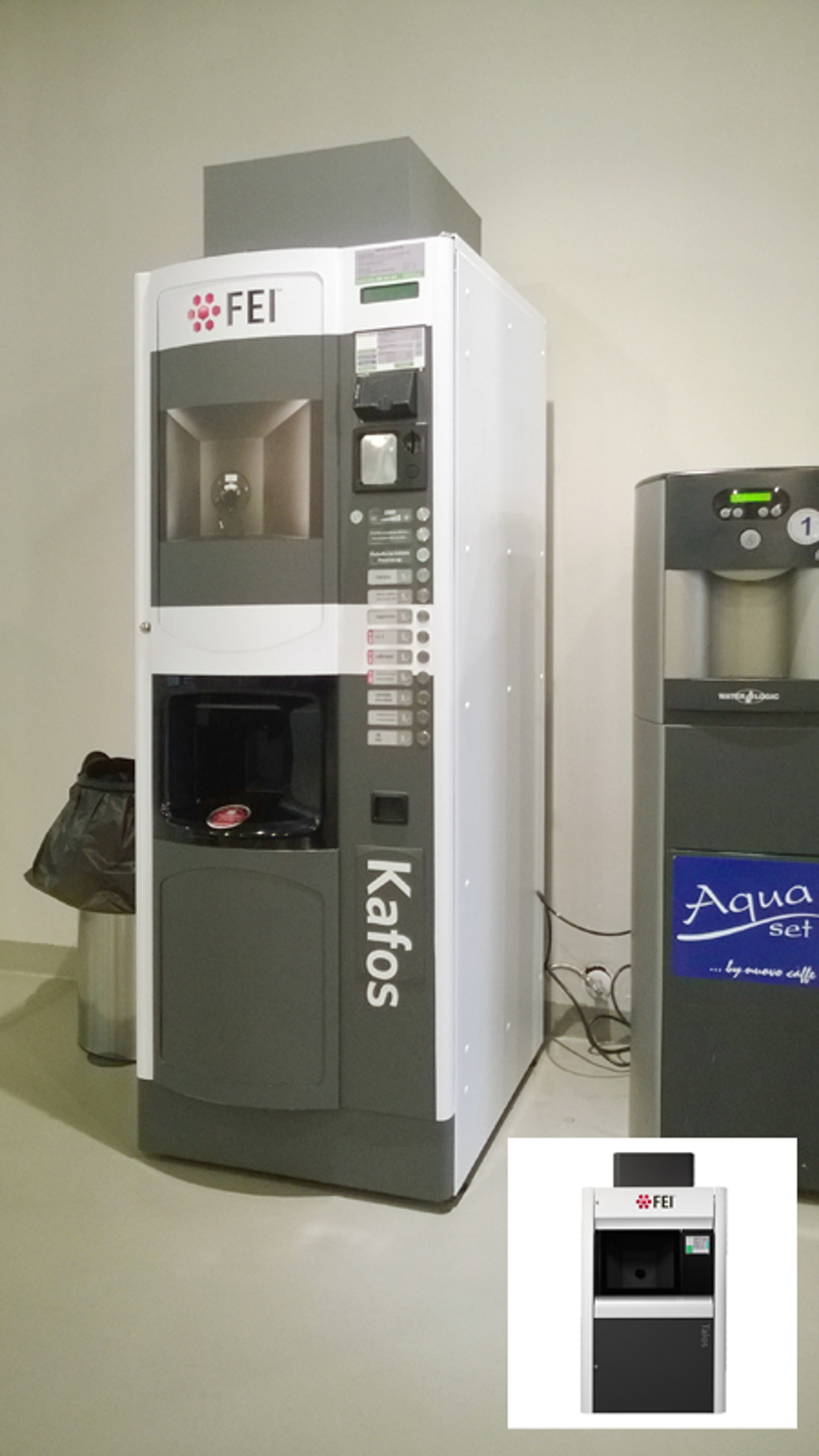 U výrobce elektronových mikroskopů FEI jsme zařizovali polep automatu na kávu ve vestibulu firmy tak, aby se podobal jednomu z výrobků firmy – mikroskopu Talos. Polepu celého automatu však předcházel také grafický návrh v našem studiu.