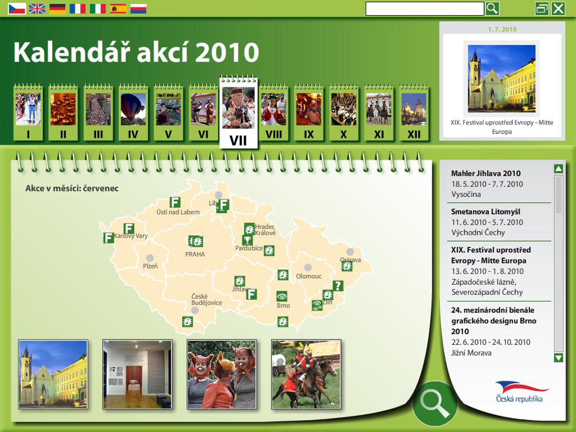 Multimediální kalendář kulturních akcí pro rok 2010 s podrobným vyhledáváním dle lokality a data akce.