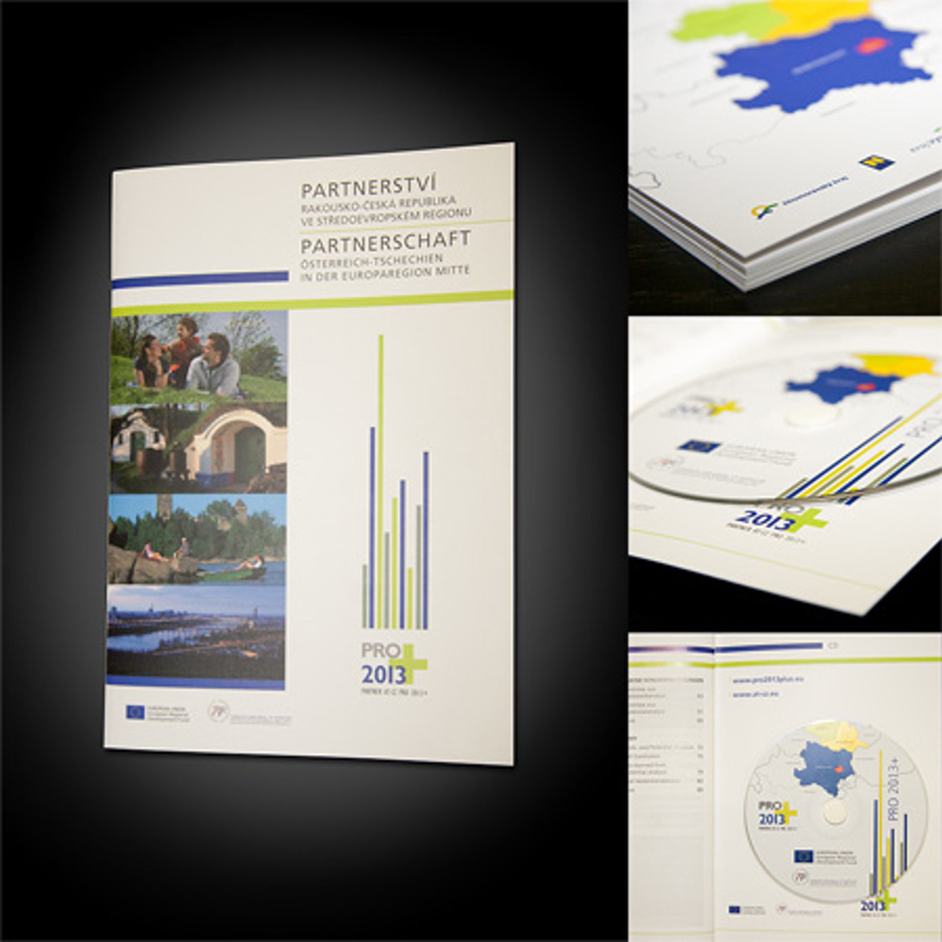Pro Jihomoravský kraj, odbor regionálního rozvoje – oddělení strategického rozvoje, jsme navrhli a vyrobili dvojjazyčnou brožuru s vlepeným CD s potiskem. Publikace bude sloužit na konferenci čtyř partnerských regionů, a to krajů Jihomoravského, Vysočiny, Dolního Rakouska a města Vídně.