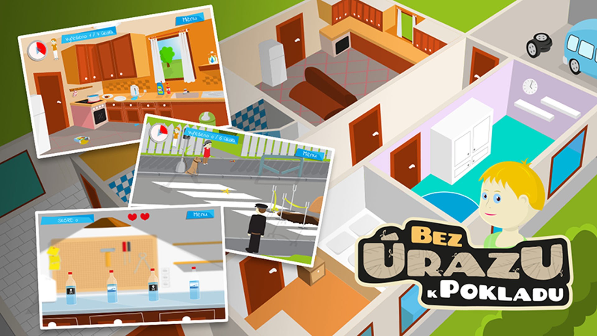 Pro dětské traumatologické oddělení jsme navrhli a vytvořili hru. Malé děti se tak prostřednictvím nejnovějších technologií, které mají dnes tak v oblibě, mohou dozvědět, jaké nástrahy a jaká nebezpečí na ně mohou číhat doma. Hra kromě hlavní dějové linie obsahuje i 6 miniher, které vycházejí z klasických titulů. To svoje si tak najde i starší generace. Hru můžete pro svoje ratolesti stáhnout pro všechny standardní platformy (Android, iOS, Windows Mobile či PC) přímo ze stránek hry, či konkrétního obchodu výrobce vašeho zařízení. Od první skicy, až po poslední řádek kódu. Vše bylo vytvořeno u nás. Až na muziku. Za tu tímto děkujeme panu Petru Bartoňkovi.
