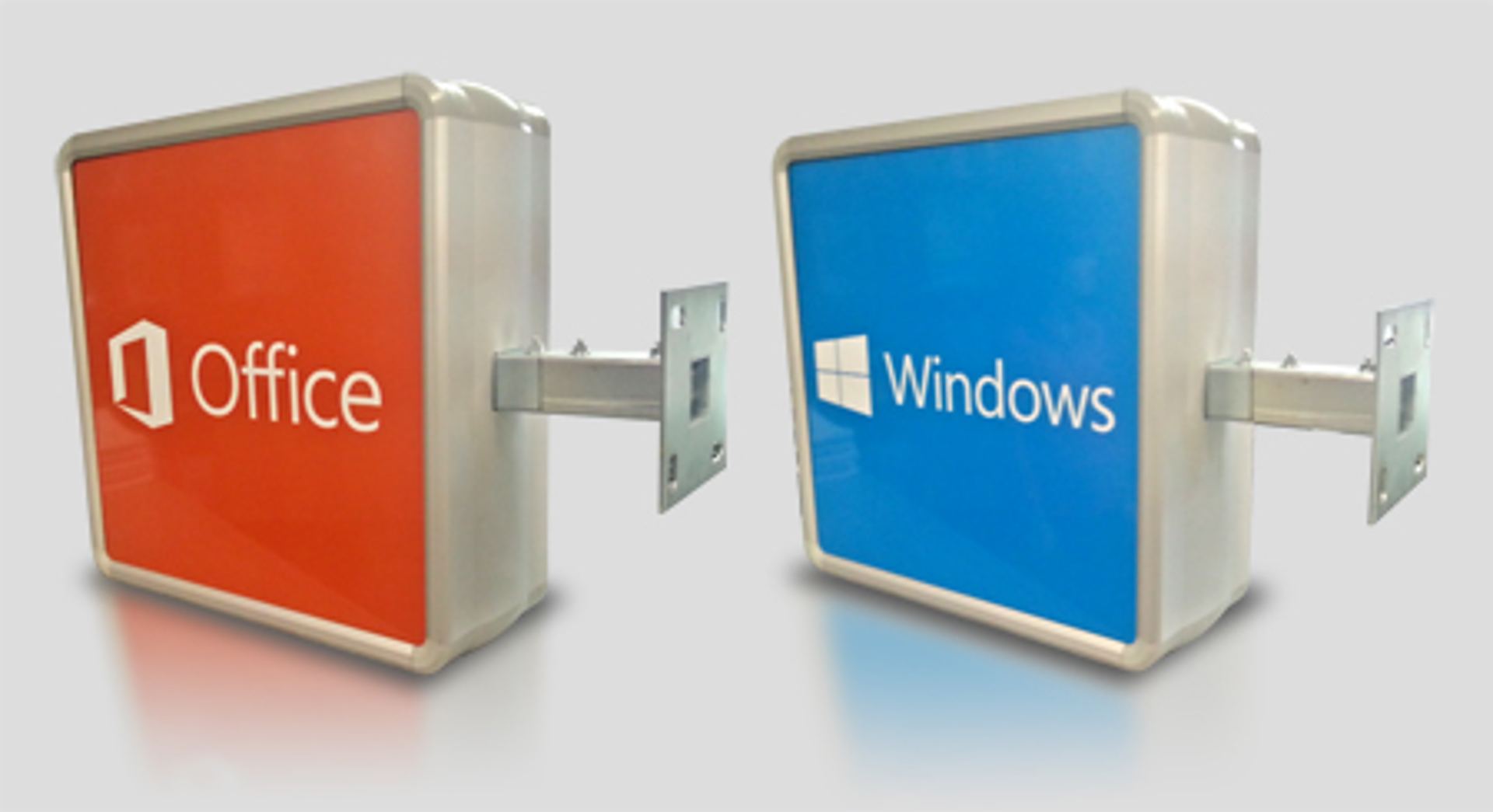 Společnost Microsoft Česká republika nás požádala o návrh a výrobu světelné reklamy podle nového brandu. Jednalo se o potisk několika desítek světelných výstrčí do do sítě partnerských prodejen. Světelné panely tak nyní představují velmi efektní způsob prezentace produktů Office 2013 a Windows 8.