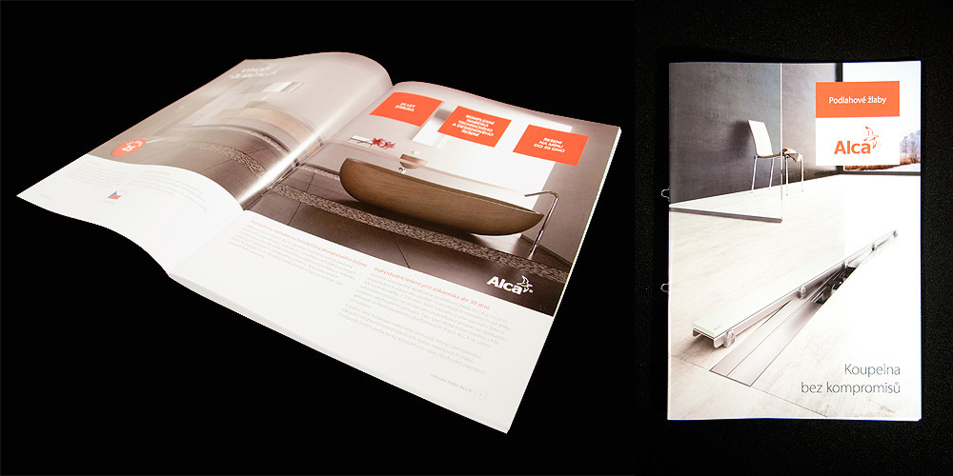 Společnosti Alca plast, s.r.o. jsme pomocí naší ofsetové tiskárny vytiskli několik tisíc nových katalogů s názvem Podlahové žlaby. Jednalo se o 32ti stránkový katalog s matnou lakovanou obálkou, která dodává katalogu zajímavý efekt.