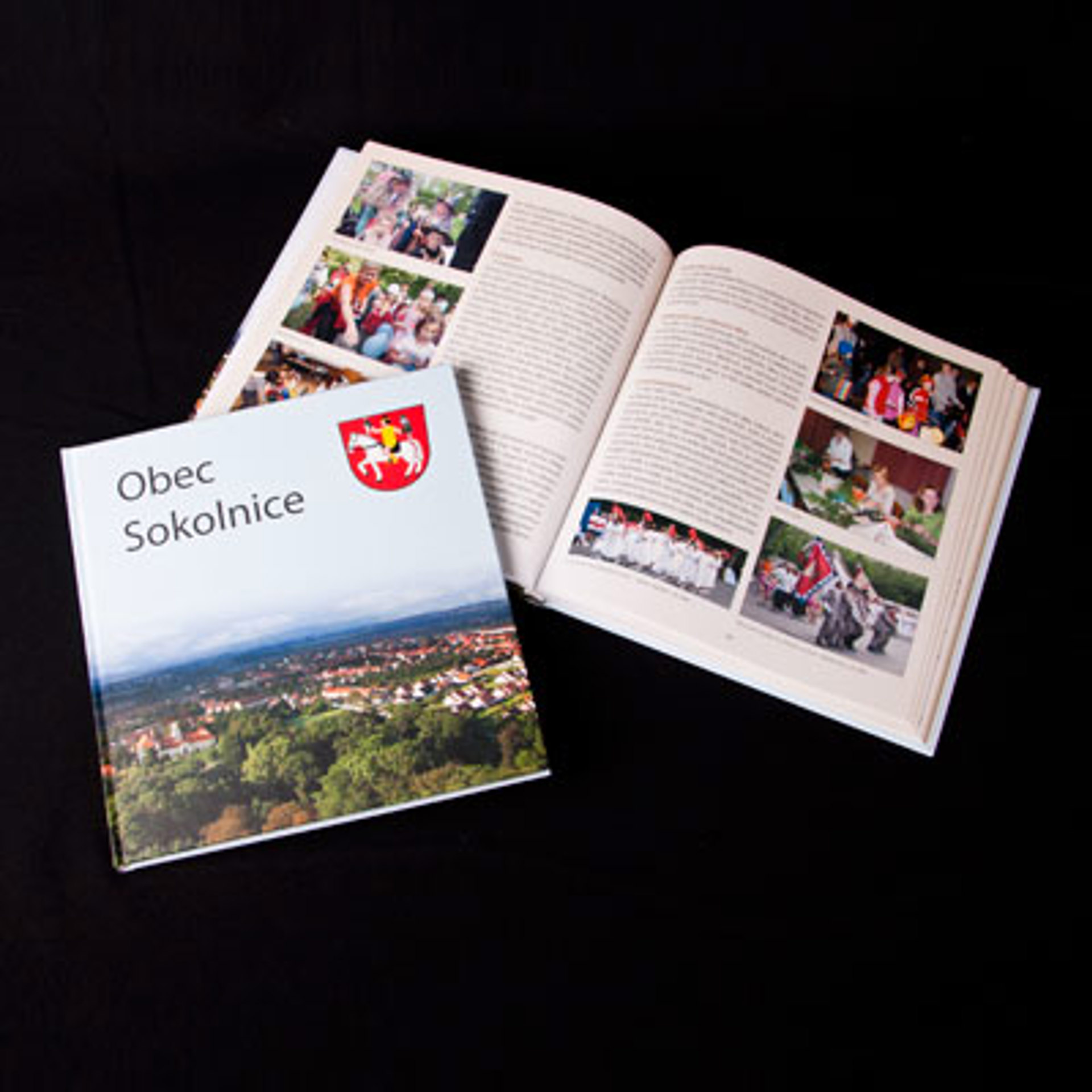 Pro obec Sokolnice jsme zrealizovali od grafiky až po tisk pamětní knihu, která má již za sebou i svůj slavnostní křest. Zajímavostí celé výroby je fakt, že jsme se na knize podíleli i redakčně a pomáhali tak sokolnickým spolkům, organizacím i jednotlivcům, kteří měli čím do knihy přispět. Přehledná 144stránková kniha má uvnitř zajímavý detail ve formě vlepených dvou stran pauzovacího papíru, kde můžeme sledovat vývoj obce v daných letech.