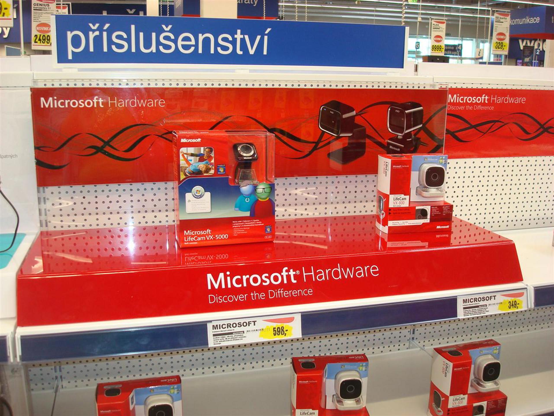 Prodejní stojan na produkty Microsoft Hardware (myši, klávesnice, kamery, ...) pro řetězec prodejen společnosti Electroworld. Abychom pomohli zviditelnění Microsoft Hardware, navrhnuli jsme sadu POS. Jde o magnetické poutače na prodejní regály, efektní plastový podstavec pod výrobky. Celkové barevné, konstrukční a poziční řešení zviditelňuje a upoutává nakupující.
