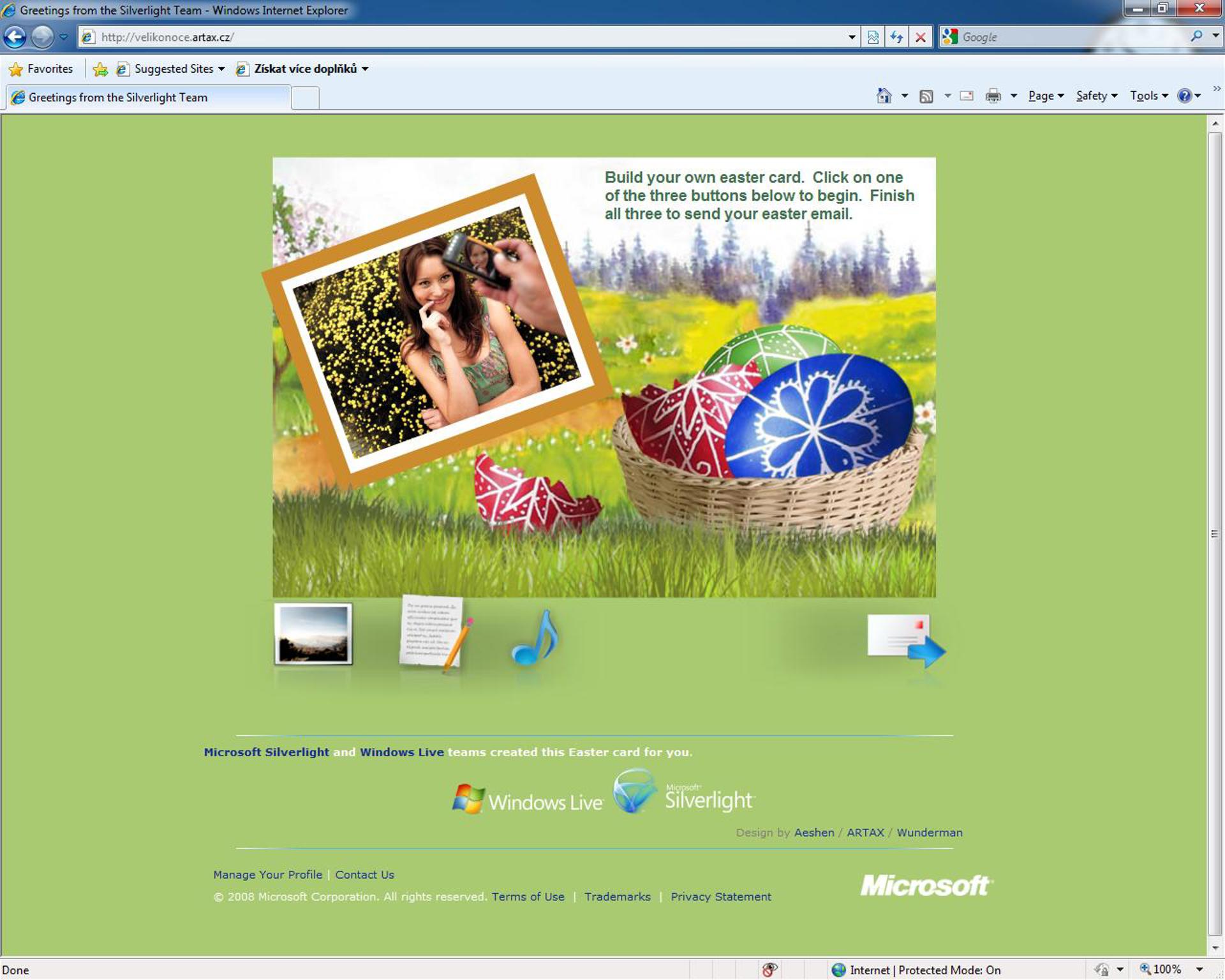 Internetová aplikace - upravitelné velikonoční přání, zvolíte si vlasní hudbu, text a obrázek.