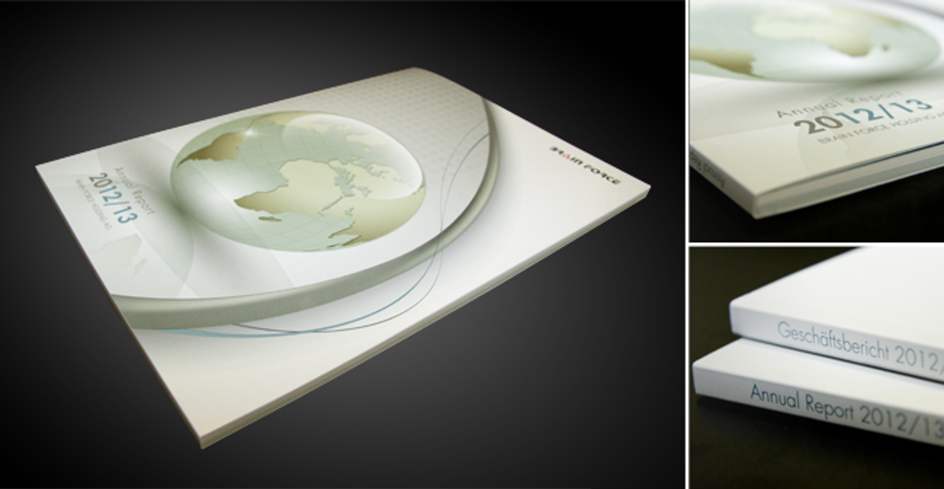 Německá společnost BRAIN FORCE Software GmbH nás letos opět požádala o tisk výročních zpráv v anglické a německé mutaci. Jednalo se o 66 stránkovou brožuru opatřenou vazbou V2. Při tisku byla použita speciální metalická pantone barva. Zajímavostí bylo celkové použití matného lamina, jak na obálce tak i na všech vnitřních stranách.