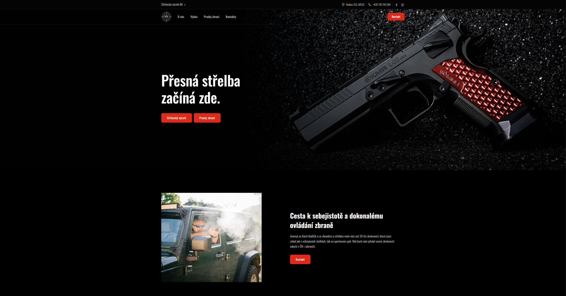 Pro KK Výcvik jsme vytvořili web, který jasně komunikuje nabídku kurzů, prodej zbraní i důležité informace pro zájemce o výcvik.