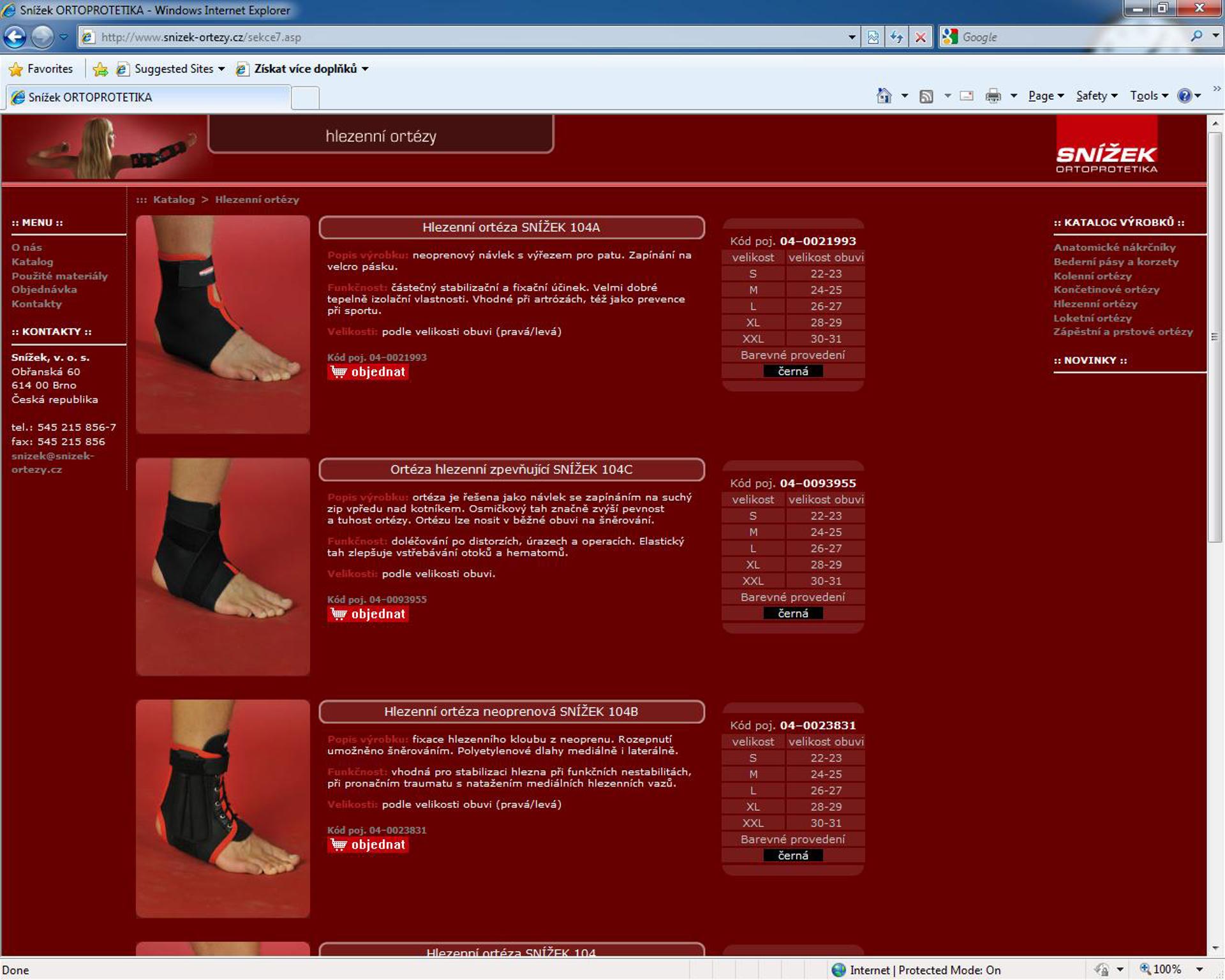 Jednoduchý katalog ortéz a ortoprotetických pomůcek s objednávacím formulářem.