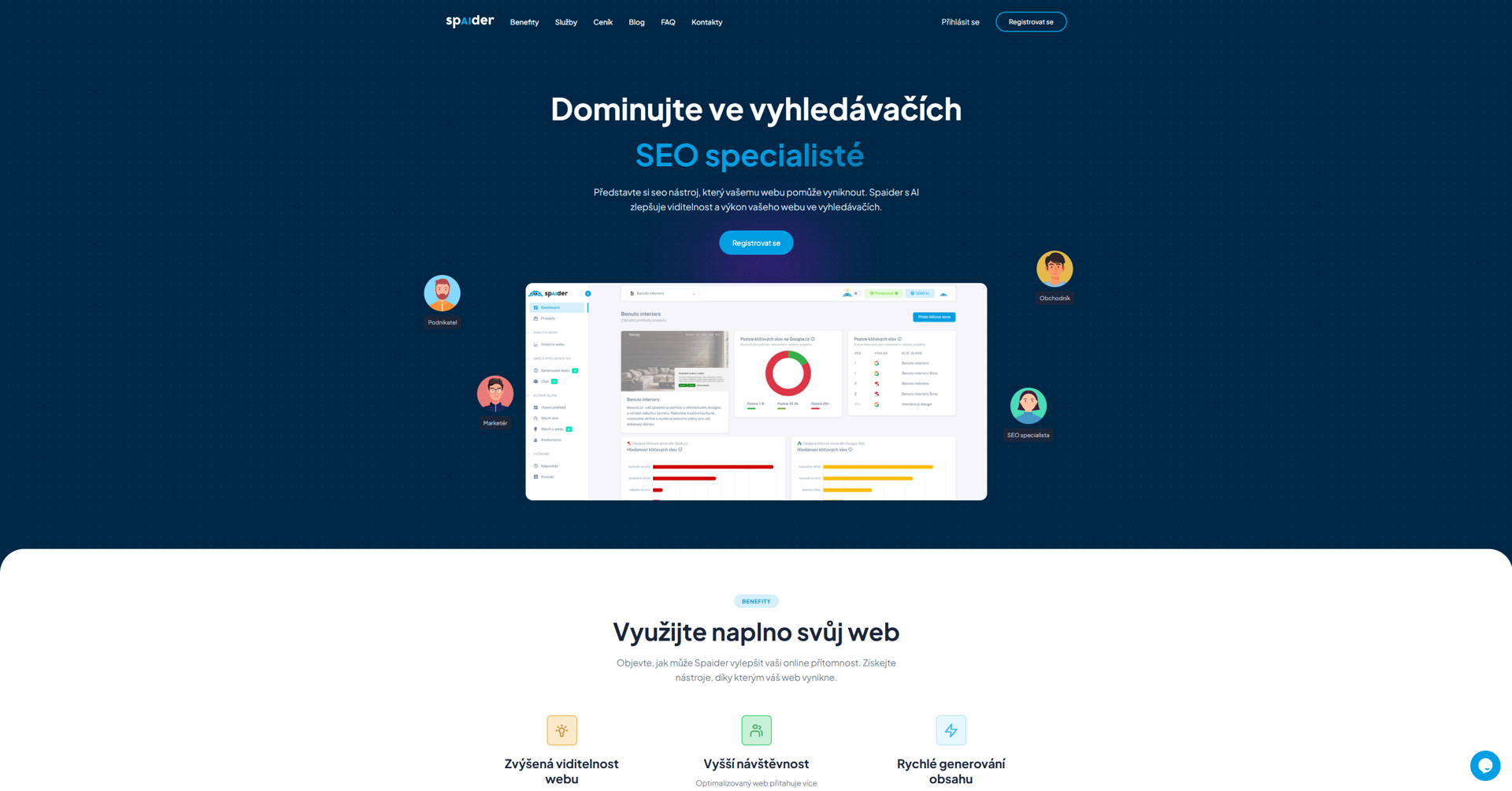 Spaider je specialista na technologická řešení – a teď to ukazuje i jeho web. Vytvořili jsme stránku, která přehledně představuje produkty a zjednodušuje kontakt se zákazníkem.